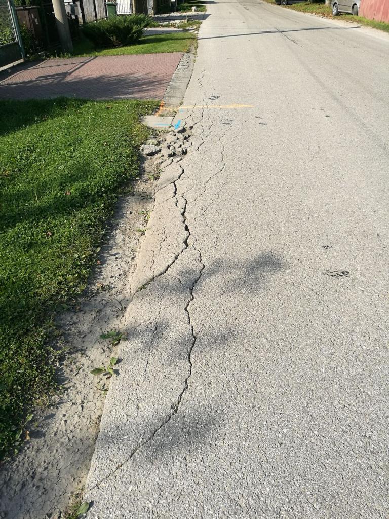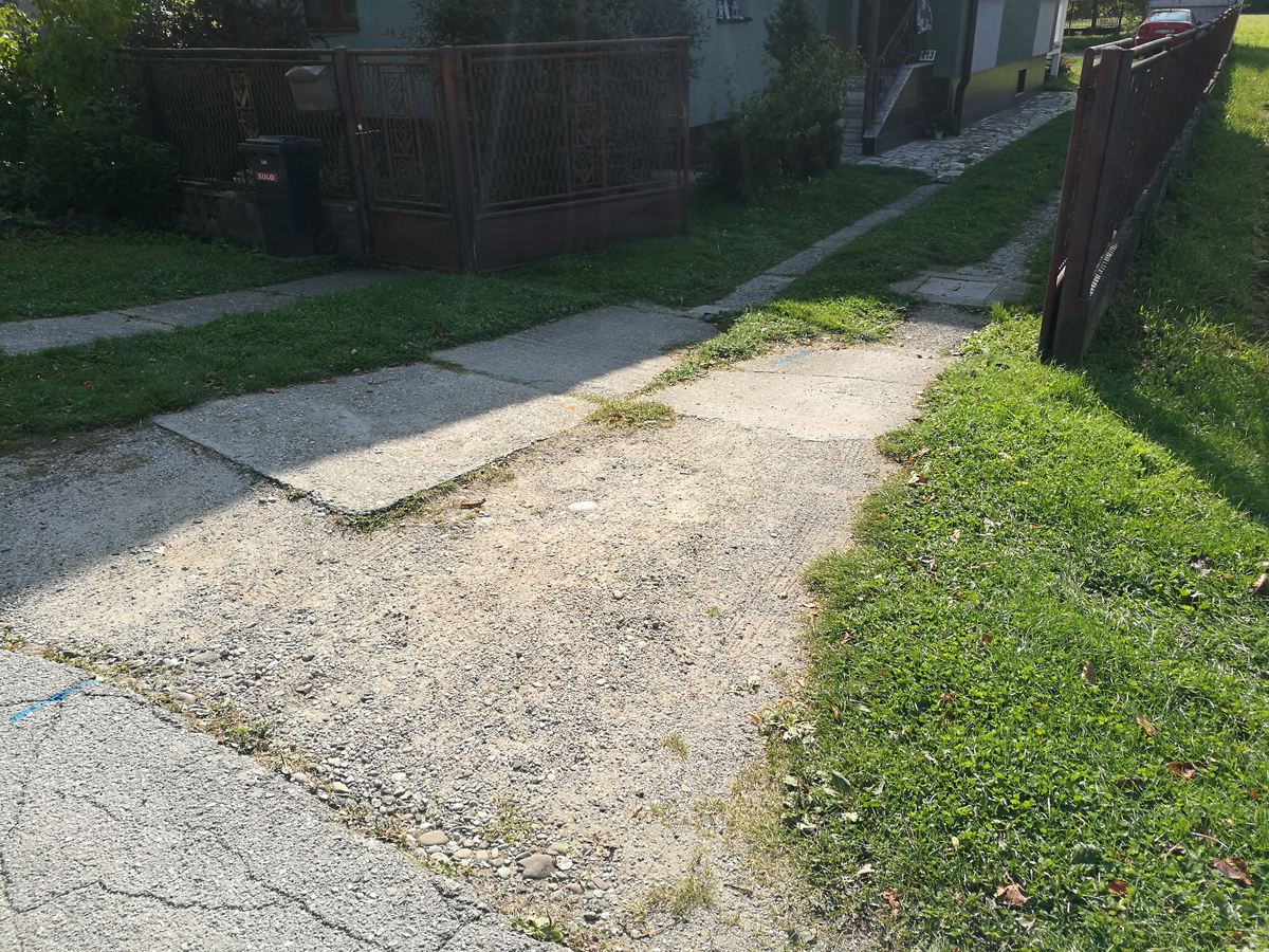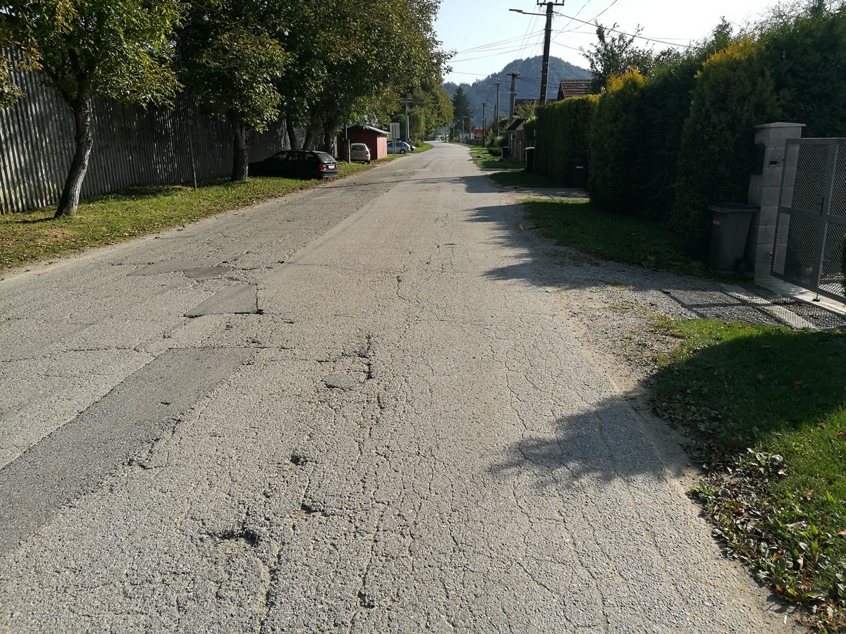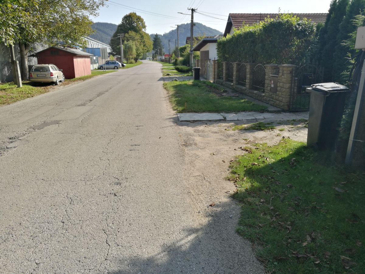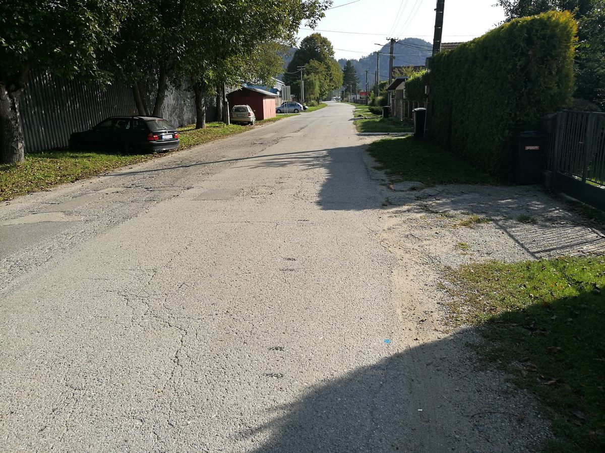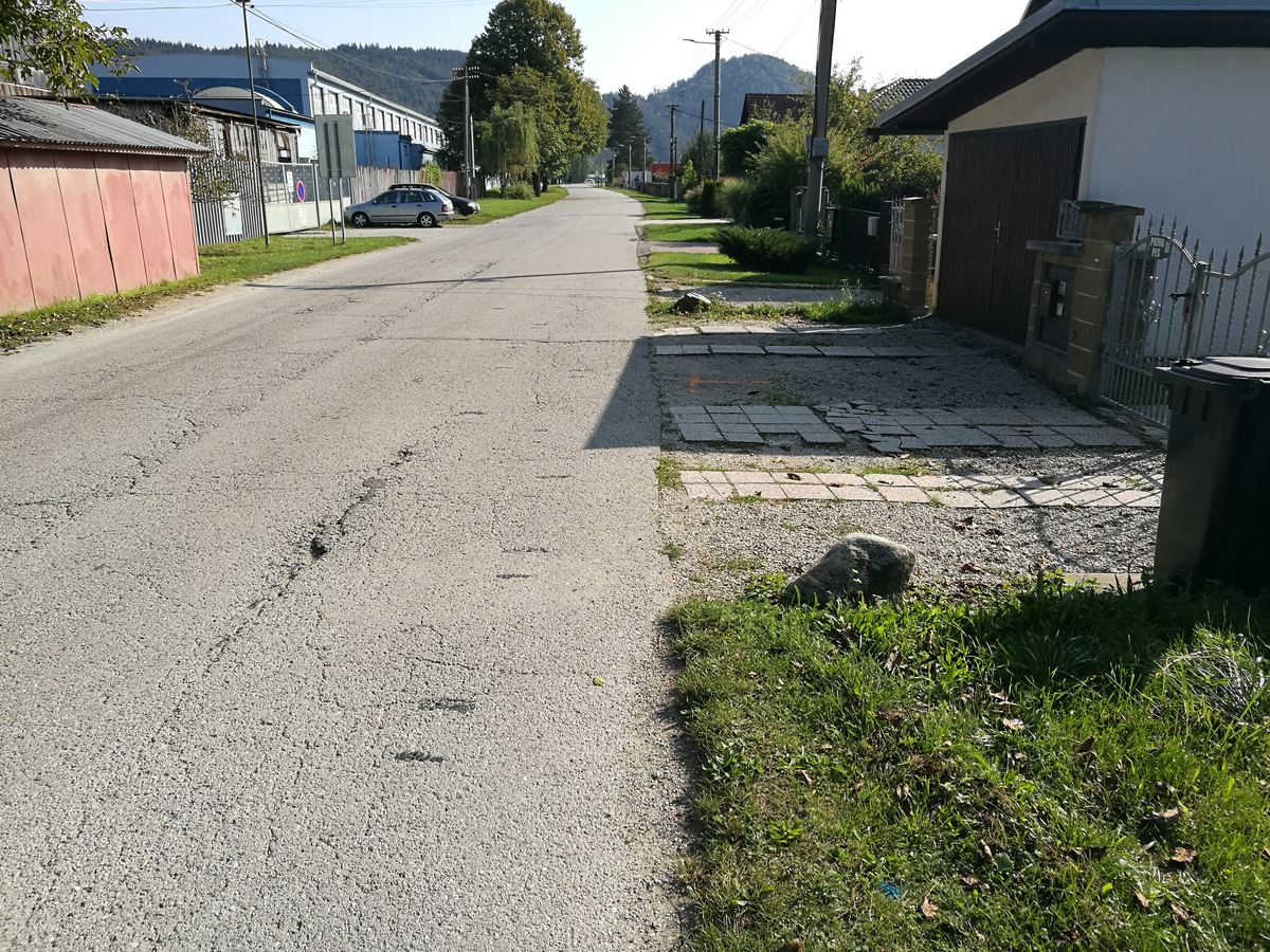 Výstavba chodníkov 3. etapa a rekonštrukcia miestnej komunikácie smerom na Váhostav - Stav pred rekonštrukciou